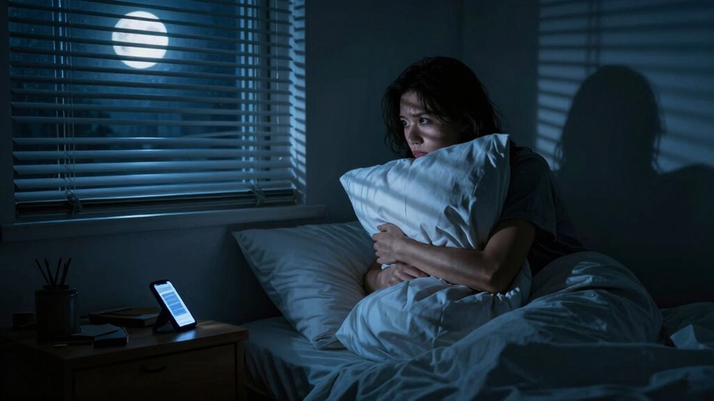Betrayal-related anxiety feels like a storm brewing in your chest, fueled by trust issues and emotional vulnerability. Unlike general insomnia, which keeps you awake, this anxiety gnaws at your sense of safety, making restful sleep elusive. Your mind replays betrayal scenes, heightening fears and insecurities. It’s a relentless cycle, where suspicion and heartbreak dance together, turning nighttime into a battleground for trust and self-preservation.