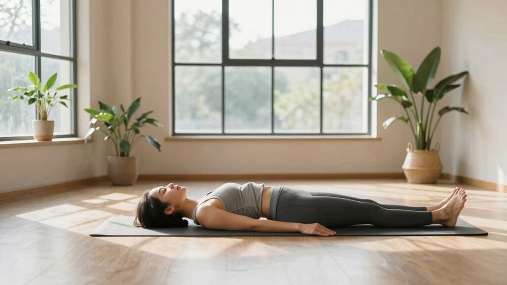 Gentle movements can markedly reduce stress and promote a sense of calm, especially when combined with mindful breathing and relaxation techniques. Engaging in gentle stretches or calming yoga helps ease tension in your body and quiet your mind. These movements encourage a gentle focus, allowing you to connect with your breath and release built-up stress. As you flow through calming yoga poses, you’ll notice your heartbeat slowing and your thoughts settling. Feel the serenity grow with each stretch, inviting calmness into your day.