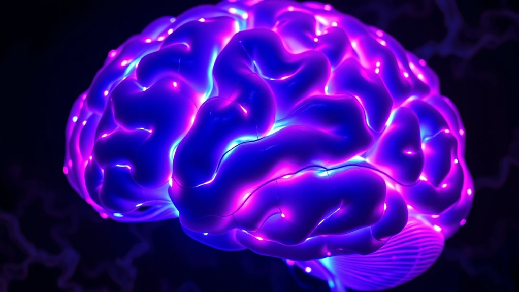 Recent findings show that sex addiction involves dopamine pathways in your brain becoming overstimulated, driving the compulsive pursuit of sexual activity despite negative effects. Triggers and cues become linked to gratification, strengthening these pathways and making it harder to resist urges. Overactivation reduces your impulse control, keeping you stuck in a cycle of craving and reward. Understanding these neurochemical changes can help you discover strategies to regain control and recover more effectively. Keep exploring to learn how the brain adapts and heals.