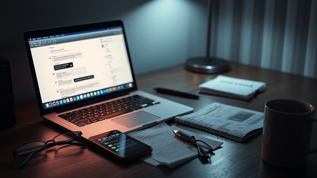 You might notice that they’re constantly adjusting their privacy settings to keep certain conversations hidden from you. For example, they could be hiding messages, photos, or even entire conversations with suspicious contacts. Some may even use features like “disappearing messages” or delete chats regularly, making it harder for you to see what’s happening. These steps are often taken to conceal infidelity or inappropriate behavior. When you observe these digital footprints, it’s essential to think about the context and whether they’re consistent with their usual online behavior.