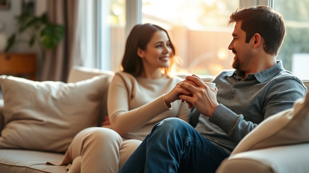 You can rebuild trust after betrayal by focusing on emotional healing and practicing honest communication strategies. Acknowledge your feelings and give each other space to process pain. Share your thoughts openly, listen actively, and avoid blame. Consistently demonstrate reliability and sincerity, showing your commitment to change. Over time, these efforts help restore trust, foster transparency, and rebuild your emotional connection, paving the way for healing and renewed intimacy.
