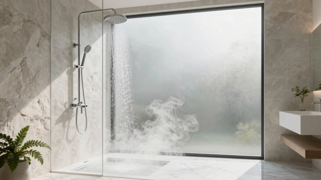 The design and aesthetic of your rainfall shower system play a key role in creating the spa-like atmosphere you desire. I recommend selecting finishes like matte black, brushed nickel, or chrome to match your bathroom’s decor and add a polished look. The size and shape of the showerhead are also vital; larger, round, or square heads enhance the luxurious feel and mimic natural rainfall. Seamless wall- or ceiling-mounted fixtures contribute to a clean, modern aesthetic, while sleek control panels and minimal handles elevate the overall sophistication. Additionally, customizable features such as adjustable angles, multiple spray modes, and coordinated finishes let you personalize your shower to reflect your spa-inspired style perfectly. A thoughtful design ensures your bathroom feels both elegant and inviting.
